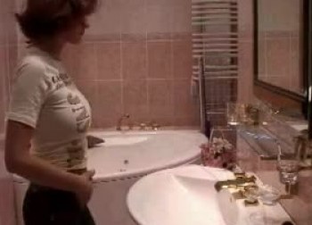 Småbrystet amatør teenager Leslie onanerer i badeværelset