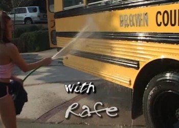 Frække skolepige Jackie Moore vasker skolebussen og bliver kneppet