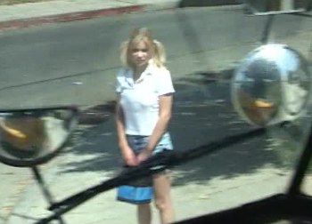 Hot blond skolepige Misty Parks knaldes i begge huller i skolebussen